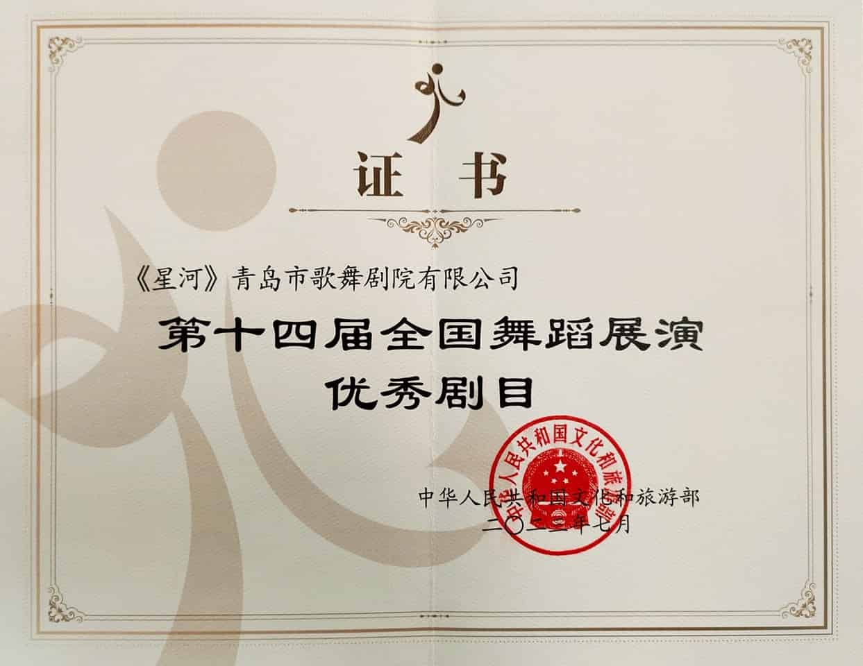 2023年7月當代舞劇《星河》獲第十四屆全國舞蹈展演優秀劇目